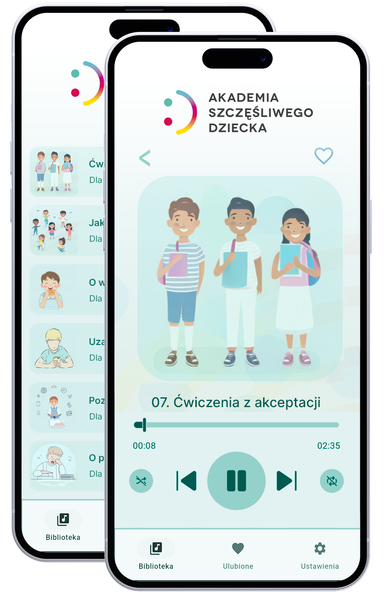 Aplikacja Akademii Szczęśliwego Dziecka umożliwia dostęp do zestawów nagrań służących wzmocnieniu psychologiczno-pedagogicznemu dzieci i młodzieży.